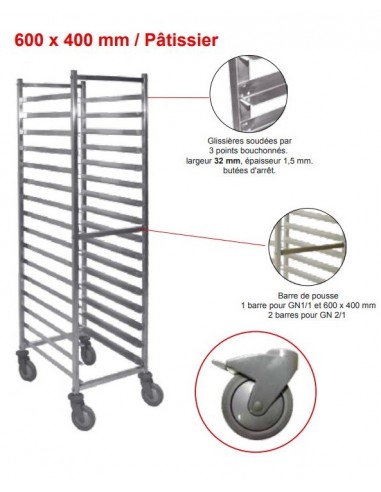 Chariot Haut à 15 glissières Gastronorme GN2/1 à monter
