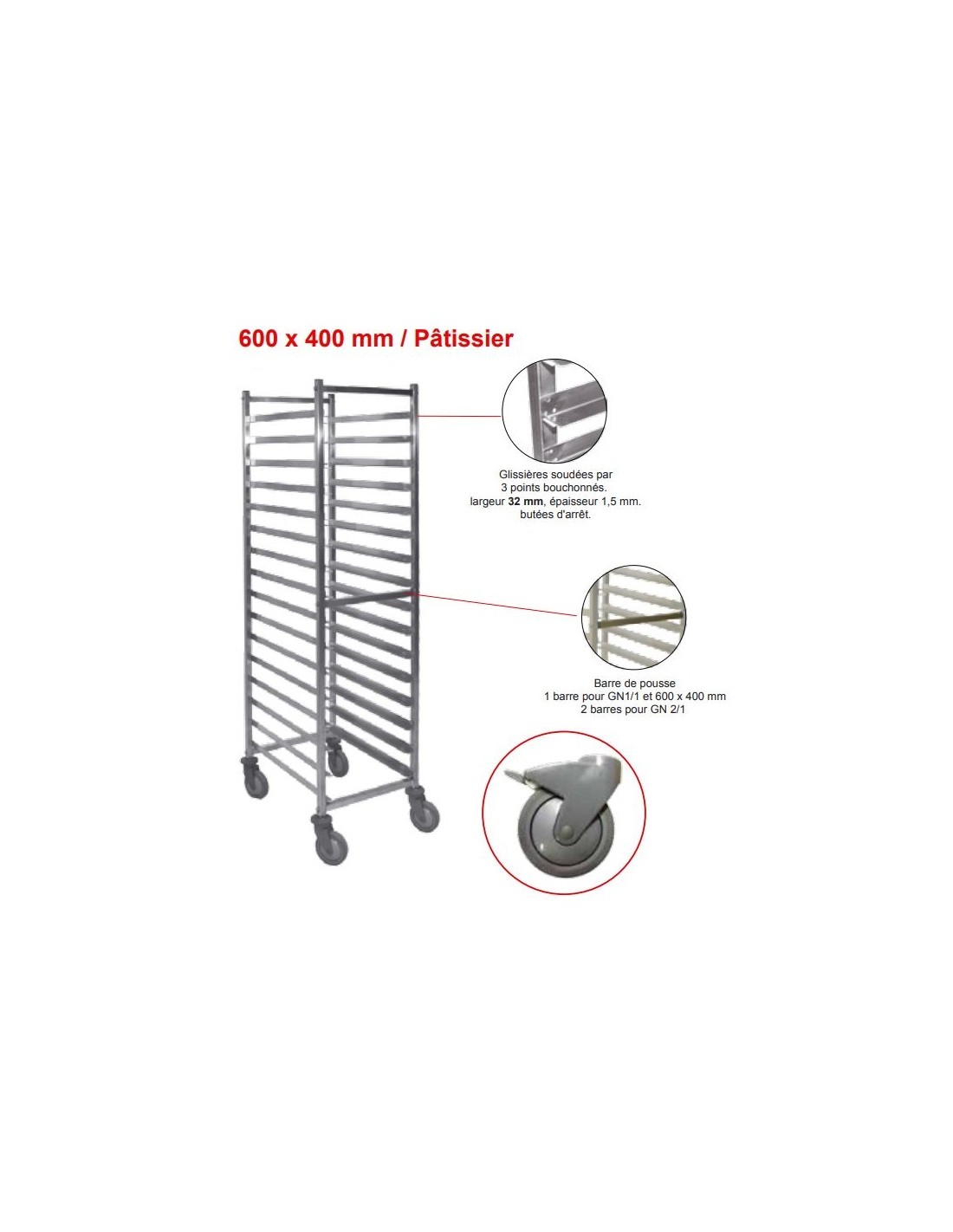 Chariot Haut à 20 glissières Euronome 600x400 livré monté