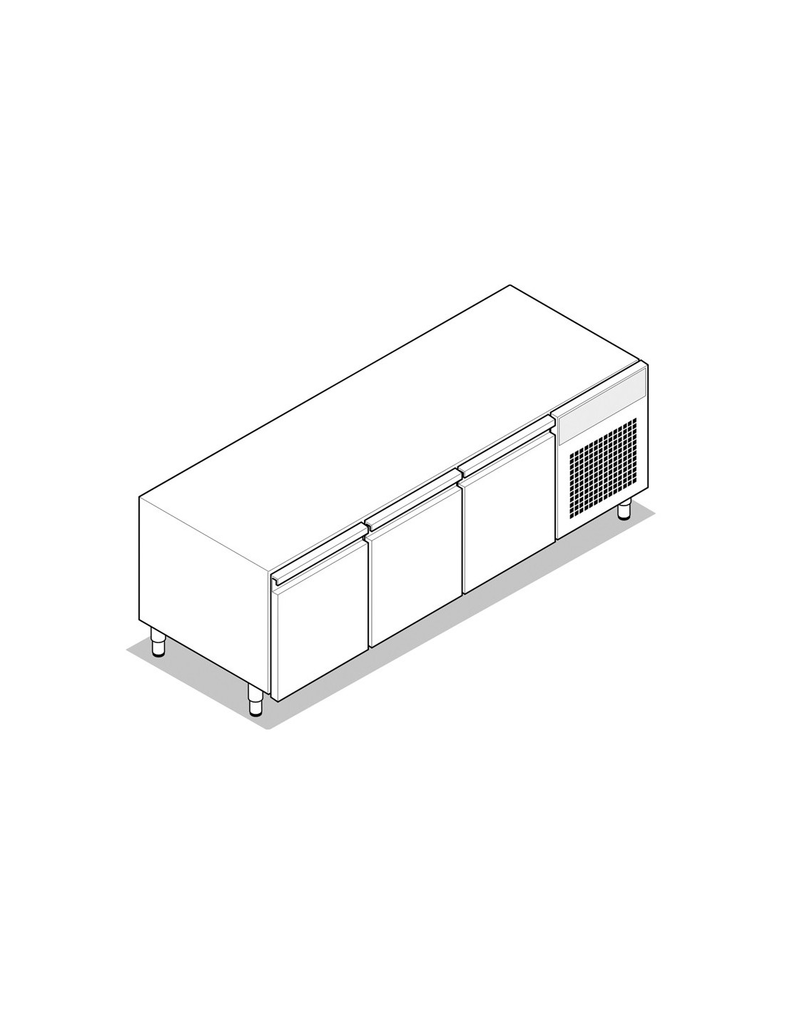 Soubassement réfrigéré 170L Gamme 700 Largeur 1600 Placard 3 portes