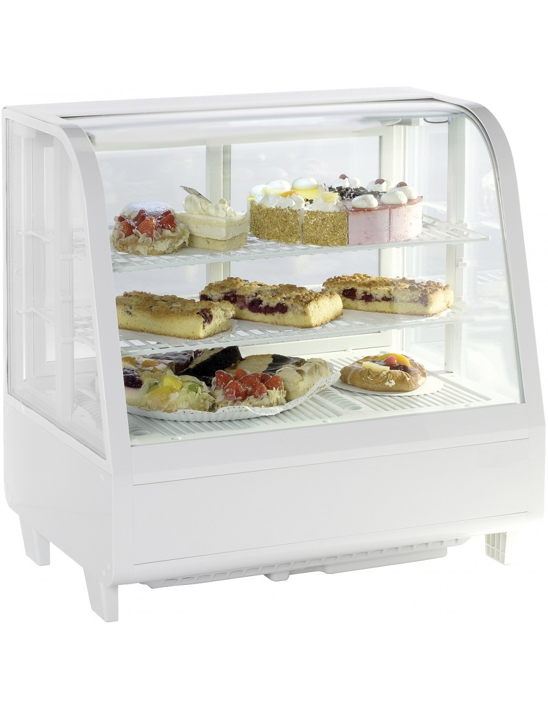 Vitrine réfrigérée à poser Vitrage Bombé L0,6m Compresseur sous la vitrine Contenance 100L Blanche