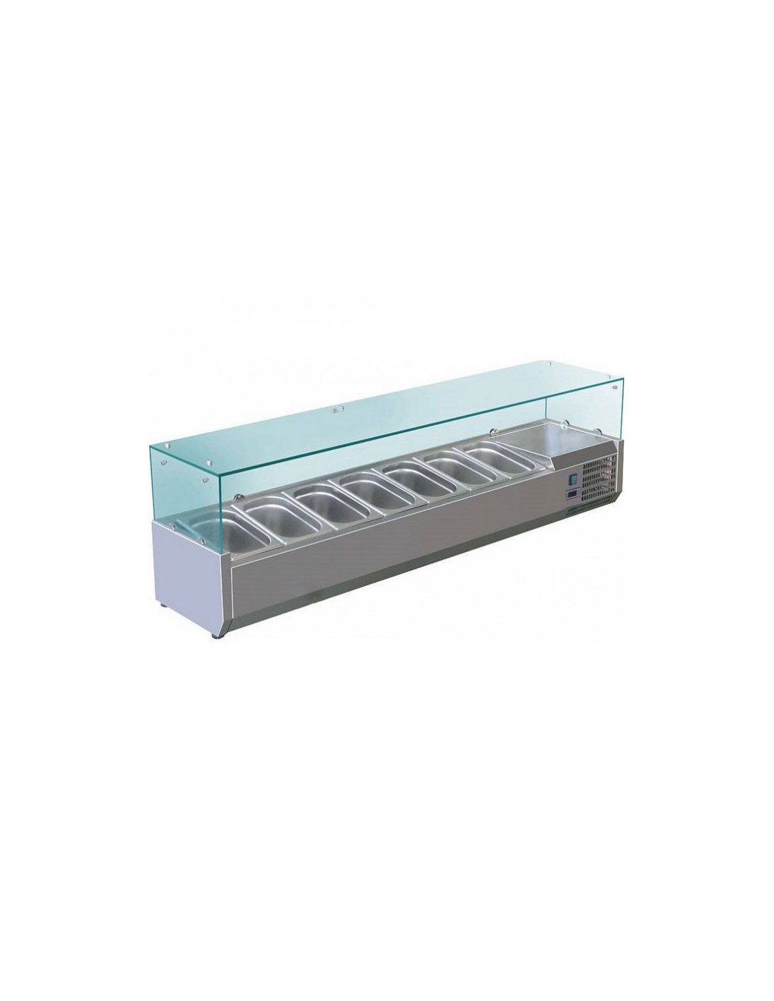 Présentoir réfrigéré pour 7 Bacs GN 1/4 Vitrage droit L1600mm Profondeur 395mm