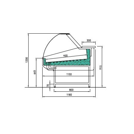Vitrine Exposition bombée poisson Groupe Logé Froid statique Longueur 1994mm