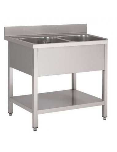 Plonge sur pieds 1400x700 Cuve 600x500x300mm 2 Bacs Sans égouttoir Etagère