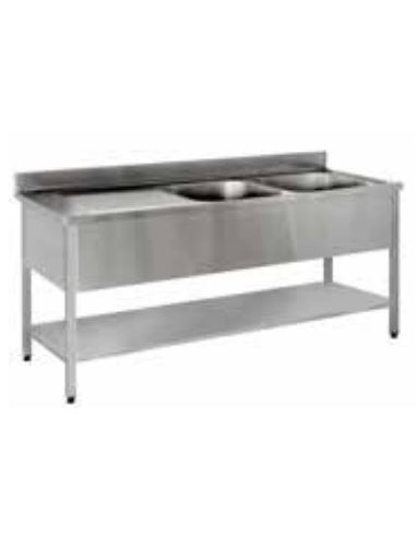 Plonge sur pieds 2400x700 Cuve 600x500x300mm 2 Bacs 2 Egouttoirs