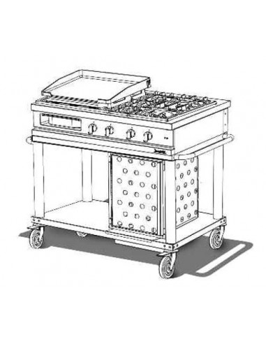 Plancha gaz et 2 feux mobile sans couvercle